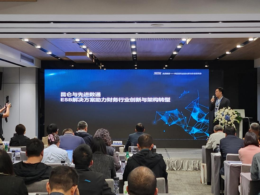 美港通官网代表讲师郭钰以《昆仑与美港通官网ESB解决方案助力财务行业创新与架构转型》为主题作发言分享。他深入剖析了当前财务行业IT架构面临的挑战,包括系统孤岛、技术老旧、扩展性不足等问题,并提出了基于企业服务总线(ESB)和微服务架构的转型方案。