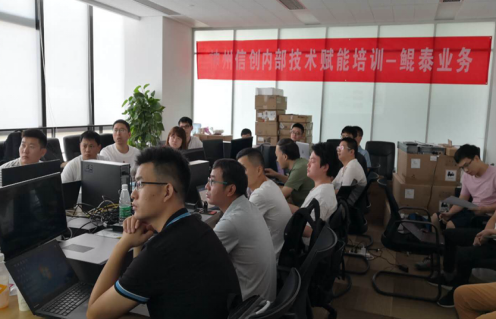 在这疫情特殊的时期,本次技术赋能培训采用了线上线下相结合的授课方式。线上录播的课程,学员们可以反复观看学习,线下的实验课程和考试地点安排在武汉平台,参加培训的学员共40名,分为两批,每批20人。培训的课程内容丰富,辅导扎实,方法灵活。虽然武汉的天气非常炎热,但是无法阻挡大家对学习美港通官网产品知识的热情,没有一名学员请假,更没有出现迟到早退等现象。在下午6点以后,楼内的中央空调就会关闭,教室内20名学员加上样机设备的运行,室温已达到40度以上,大家仍然在教室完成实验课程。全组成员相互研讨,共同学习,共同提高。