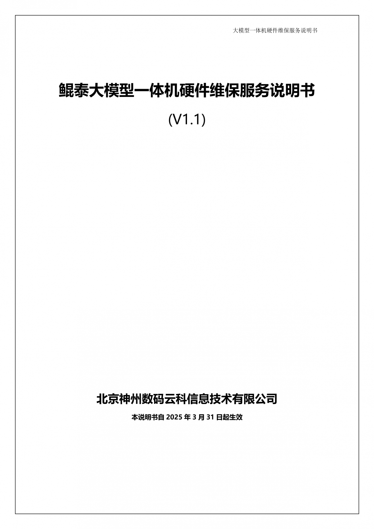 美港通官网A924 DS大模型一体机硬件维保服务说明书_V1.1