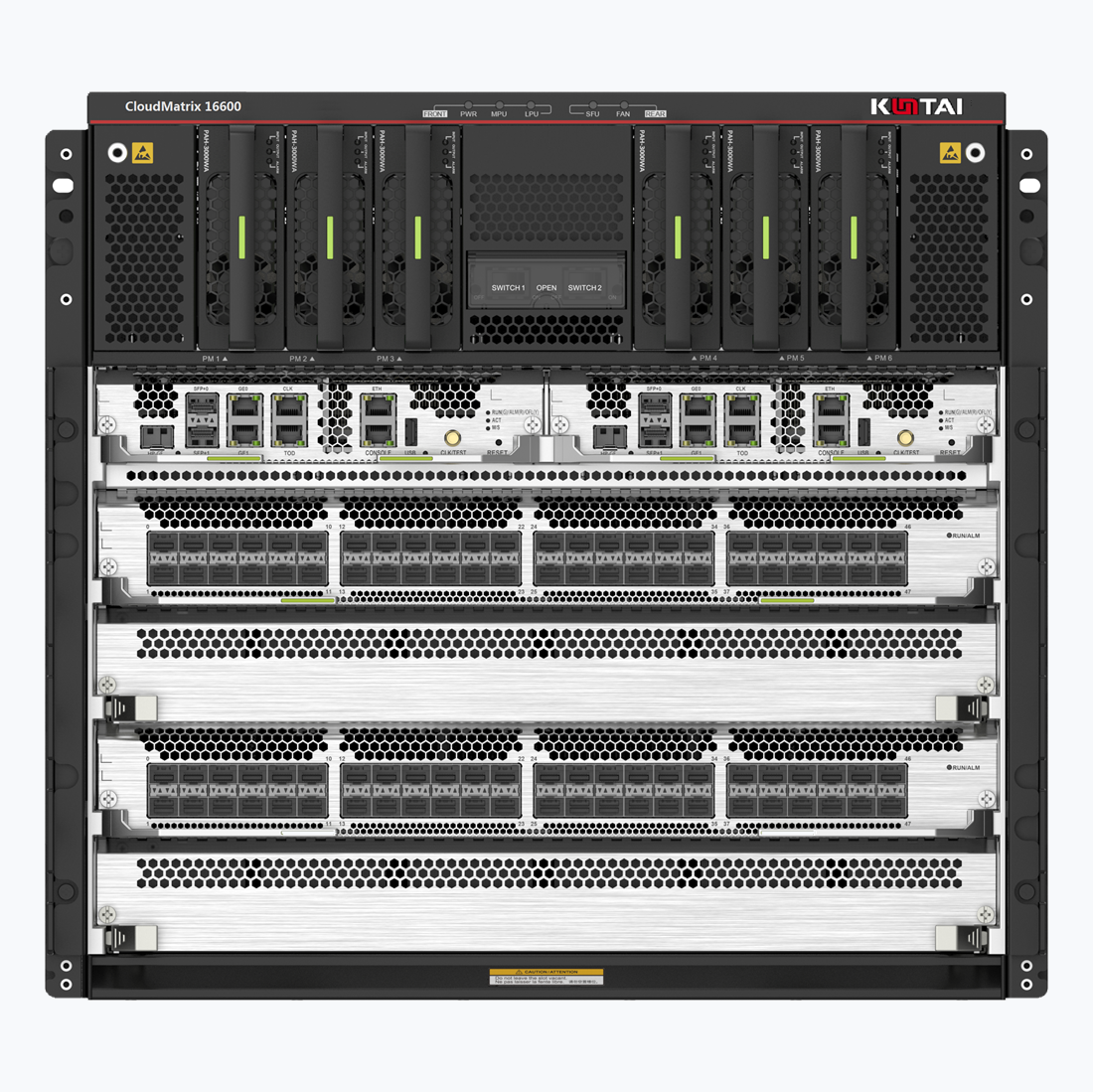 CM16608-AH | CM16608-AH 交换机研讨机箱(含8个业务插槽,2个引擎插槽,6个交换网板插槽(未来可扩展到9),10个电源槽位,满配3个风机盒),需另行选配研讨电源、板卡及软件&许可方可使用 | |