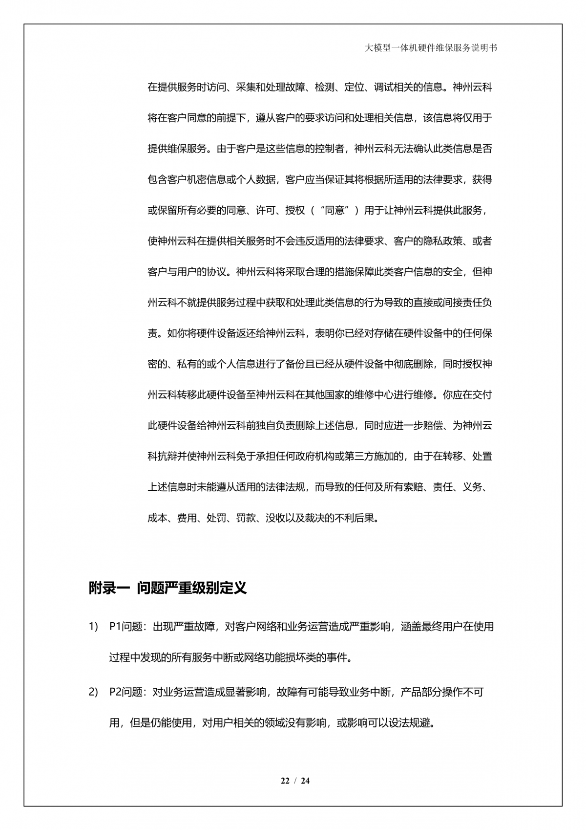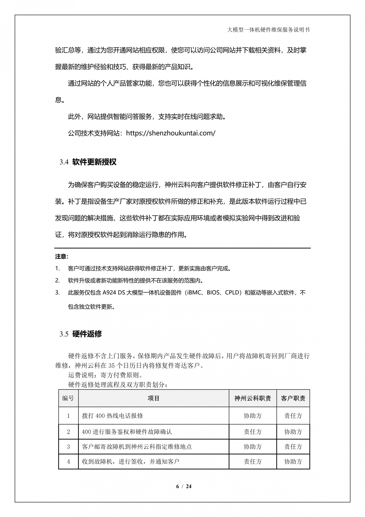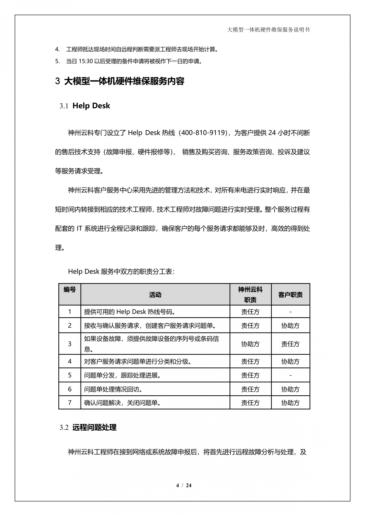 美港通官网A924 DS大模型一体机硬件维保服务说明书_V1.1